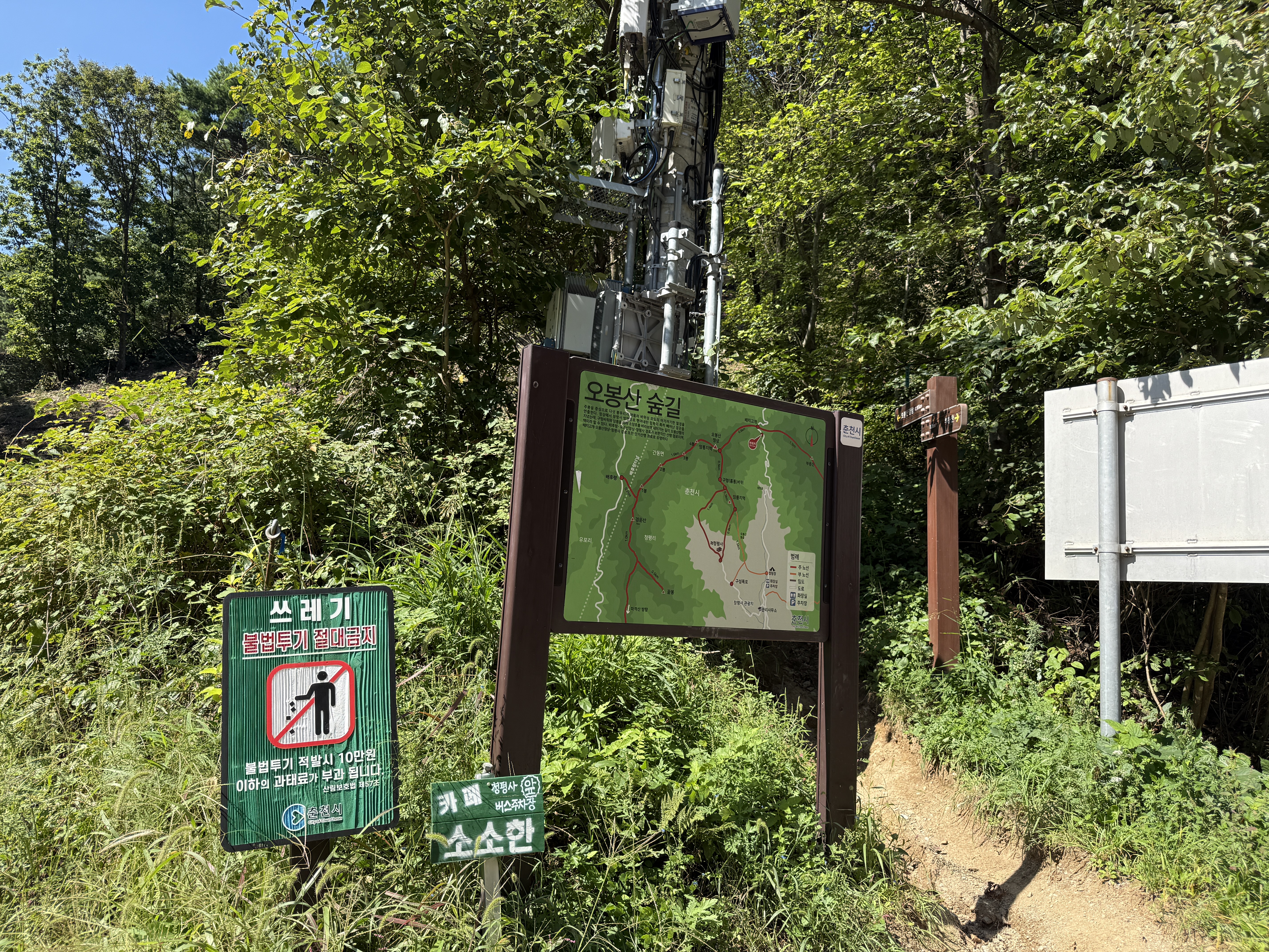 출발지는 배치고개였다. 주소로는 춘천시 북산면 청평리 산183-19. 차로 이동해 도착하면 딱 세 대 정도 주차할 수 있는 협소한 공간이 나타난다. 자리가 없으면 길가에 세워야 한다는데, 나는 다행히 평일 오전에 도착해 빈자리를 차지할 수 있었다. 차 문을 닫자마자 바로 등산로가 시작된다. 따로 길게 걸어 들어가야 하는 접근로가 없다는 건 최단코스만의 장점이었다. 배치고개에 서서 배낭을 메는 순간, 이미 나는 오봉산 등산코스의 첫 발을 내딛은 셈이었다.